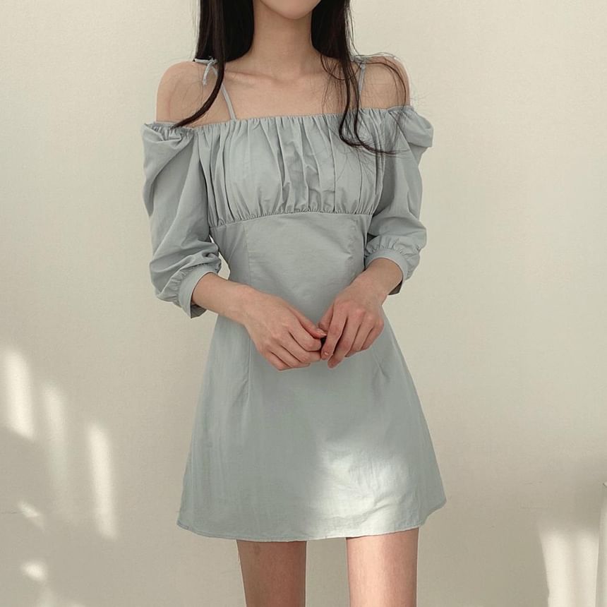 Cold-Shoulder Plain Mini A-Line Dress