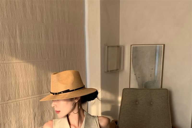 Collared Button-Up Midi Dress Sleeveless Slit A-Line