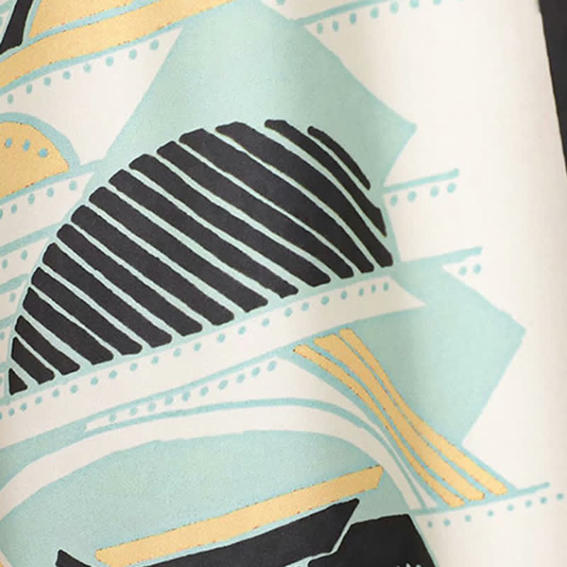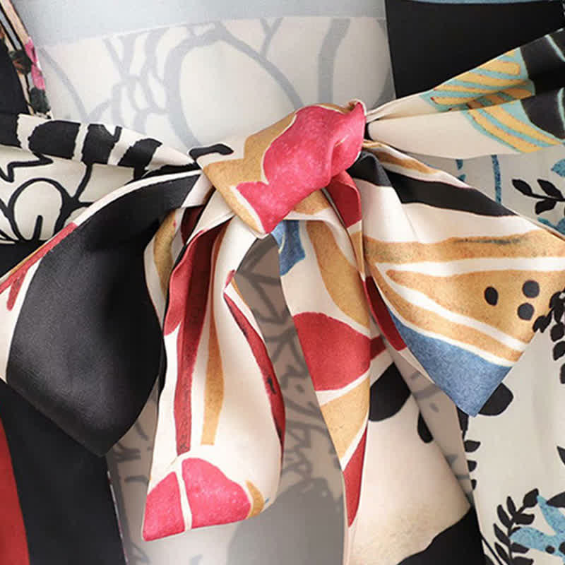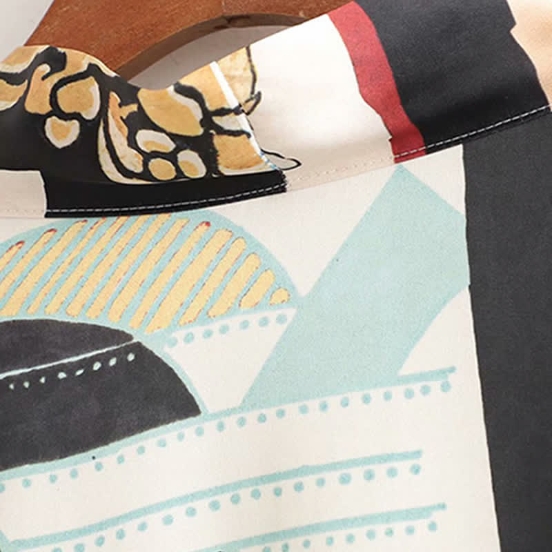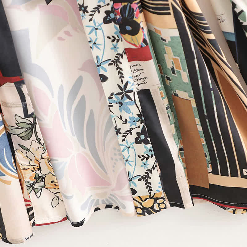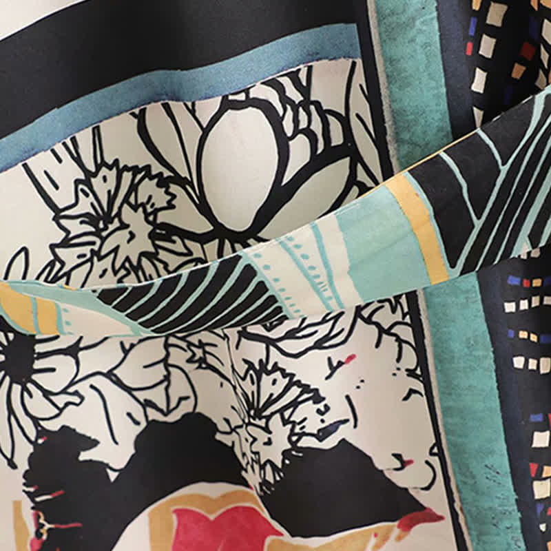 Colorblock Print Cardigan Kimono Outerwear Wide Leg Pants