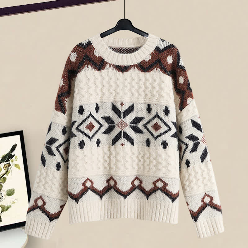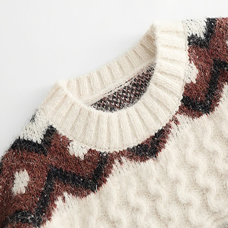 Colorblock Round Collar SweaterMidi Skirt