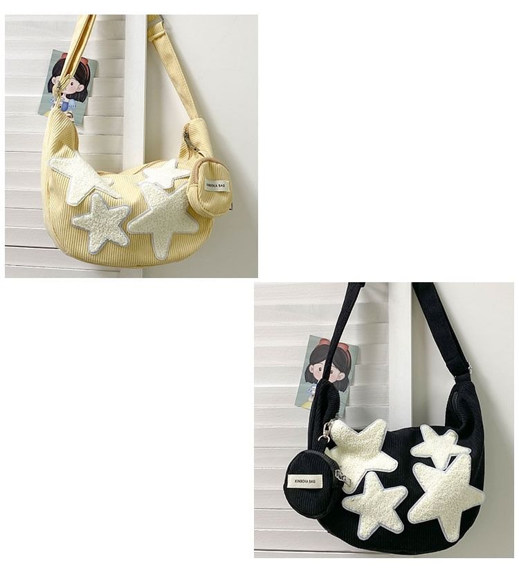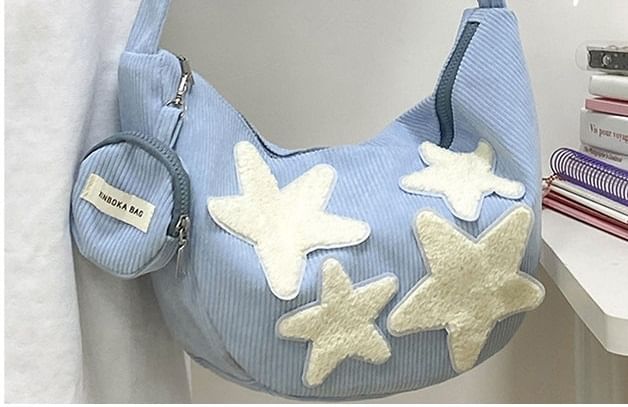 Corduroy Star Applique Zipper Crossbody Pouch With Coin Purse (Various Designs)