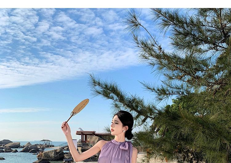 Crewneck A-Line Plain Maxi Sleeveless Dress