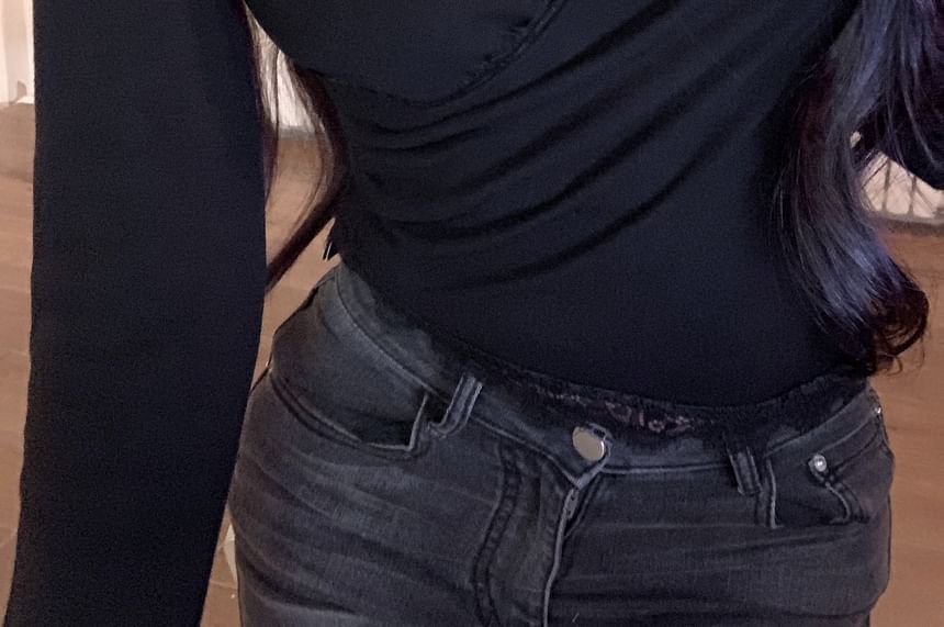 Crop Tee Long-Sleeve Trim Halter-Neck Set: Top Lace + V-Neck