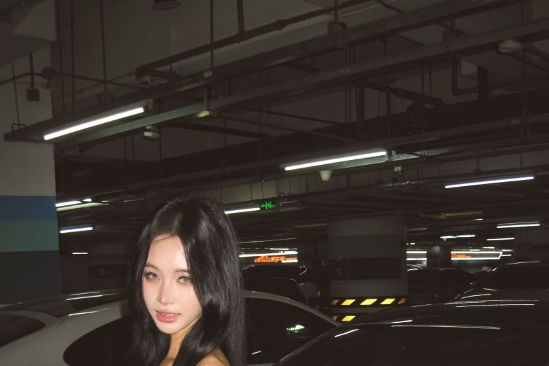 Cropped Tee Short-Sleeve One-Shoulder Plain
