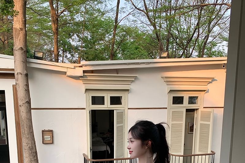 Cutout Plain Neck Cap Asymmetrical Sleeve Top