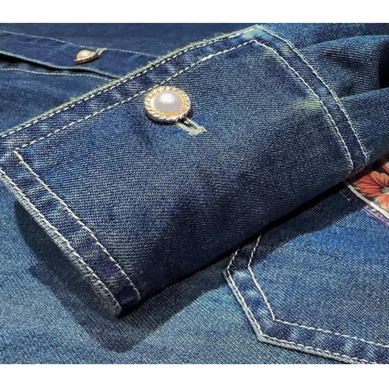 Denim Butterfly Shirt Irregular Skirt Set