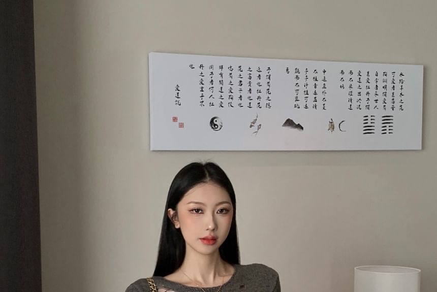 Distressed Plain Top Long Knit Neck Sleeve Crew