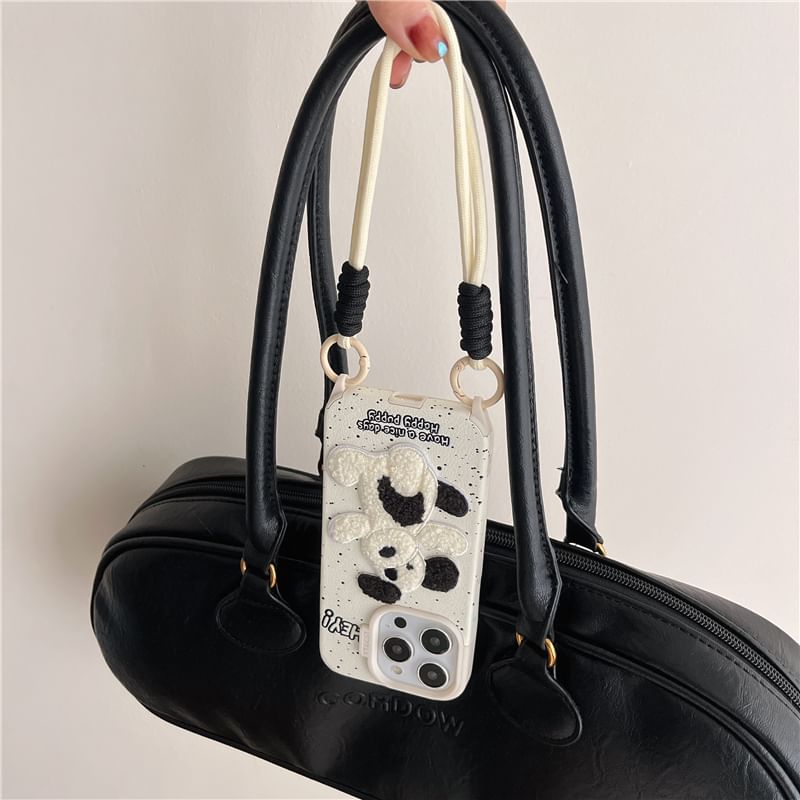 Dog Embroidered Phone Case / Strap / Set - iPhone 16 Pro Max / 16 Pro / 16 Plus / 16 / 15 Pro Max / 15 Pro / 15 Plus / 15 / 14 Pro Max / 14 Pro / 14 Plus / 14 / 13 Pro Max / 13 Pro / 13