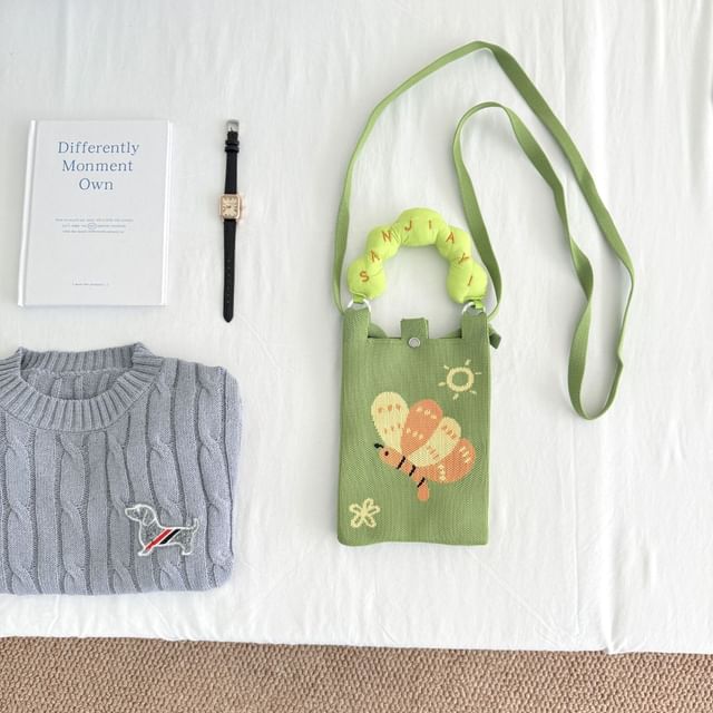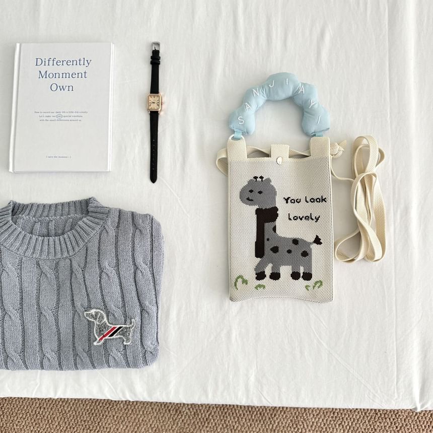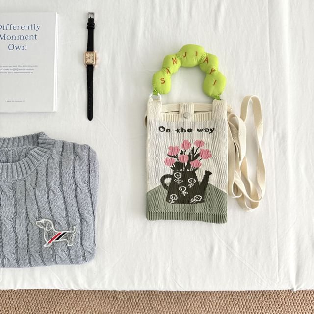 Top Donut Handle Cartoon Print Knit Crossbody Bag