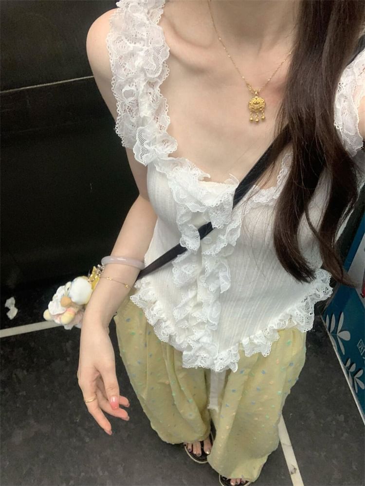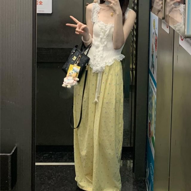 Drawstring Waist Dotted Jacquard Wide Leg Pants