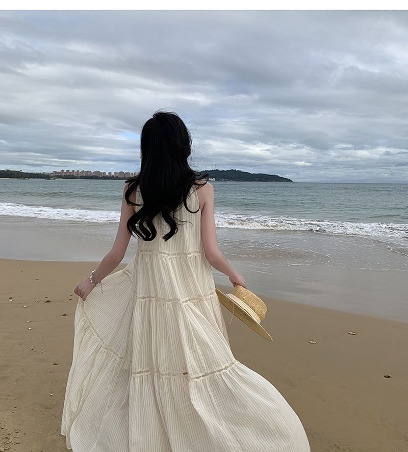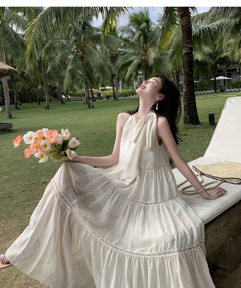 Sleeveless Crewneck Plain Midi A-Line Dress