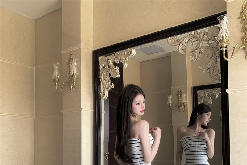 Striped Midi Sheath Tube Dress