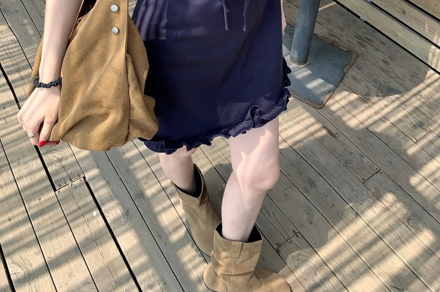 Dress V-Neck Lace Bow Panel Sleeveless A-Line Mini