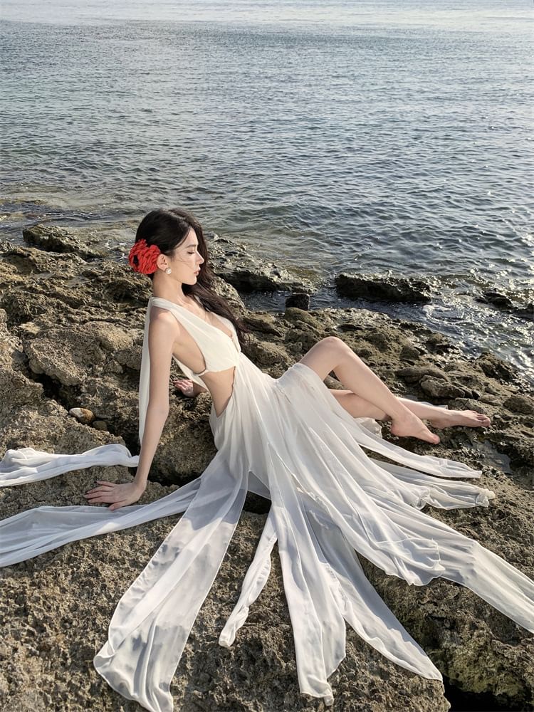 Dress V-Neck Plain Sleeveless Maxi A-Line