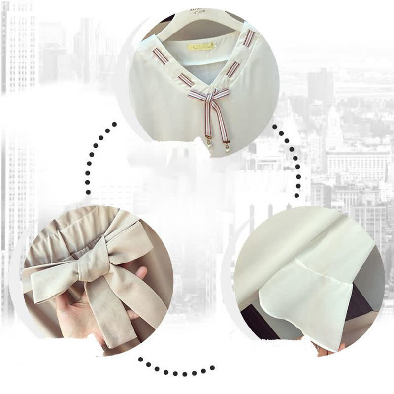 Elegant Bowknot Chiffon T-Shirt Lace Up Wide Leg Pants