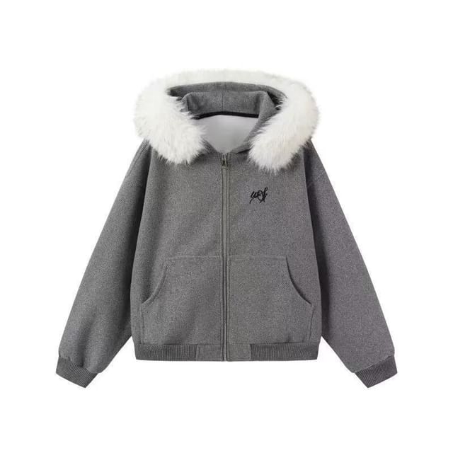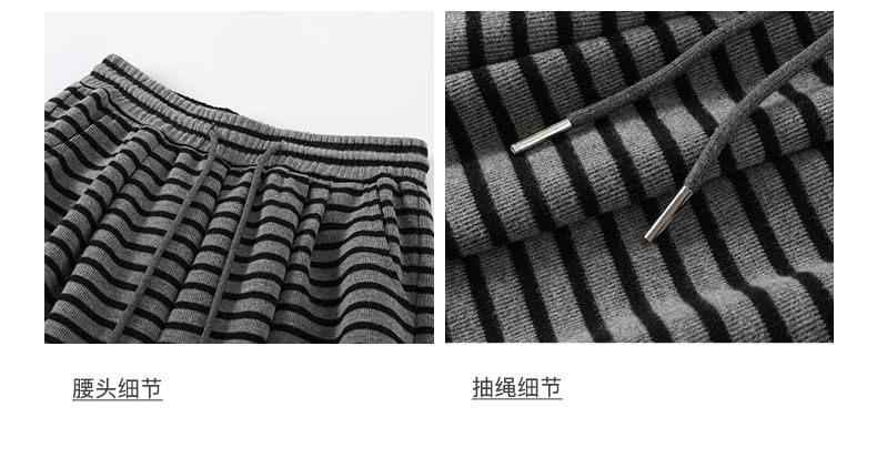 Embroidered Fluffy Trim Zip Hoodie / Drawstring Waist Striped Wide Leg Pants