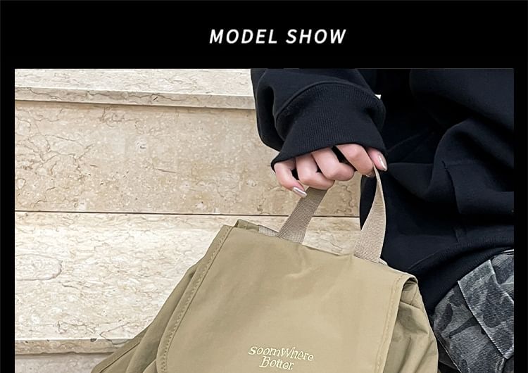 Embroidered Lettering Buckled Backpack Nylon Flap