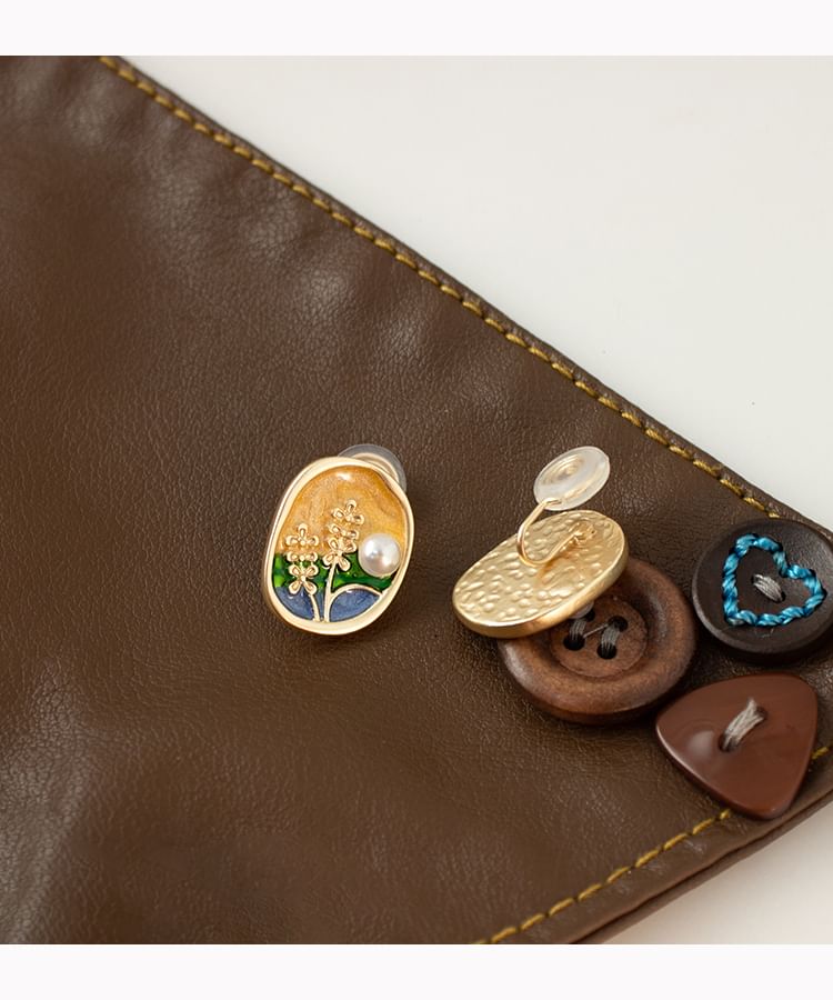 Faux Pearl Enamel Stud Earring / Clip On Earring