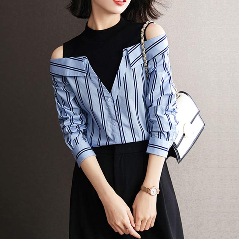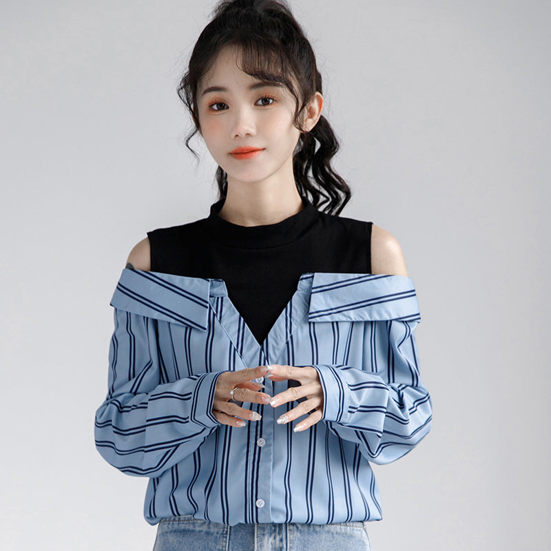 Add a touch of elegance to your wardrobe with our Fake Two Piece Striped Strapless Shirt. This versatile piece offers a seamless transition from casual to formal wear, featuring a unique faux two piece design and a classic pinstripe pattern. Upgrade your style with ease.