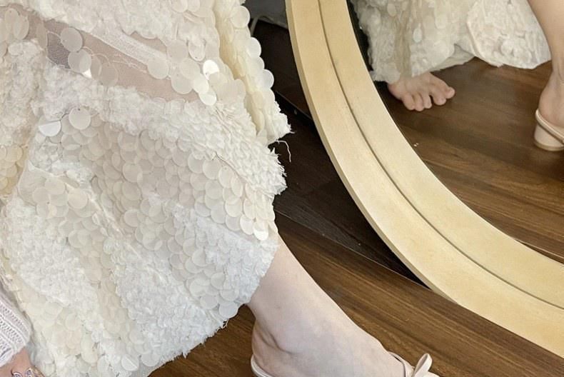 Faux Chunky Toe Leather Sandals Plain Bow Accent Square Heel
