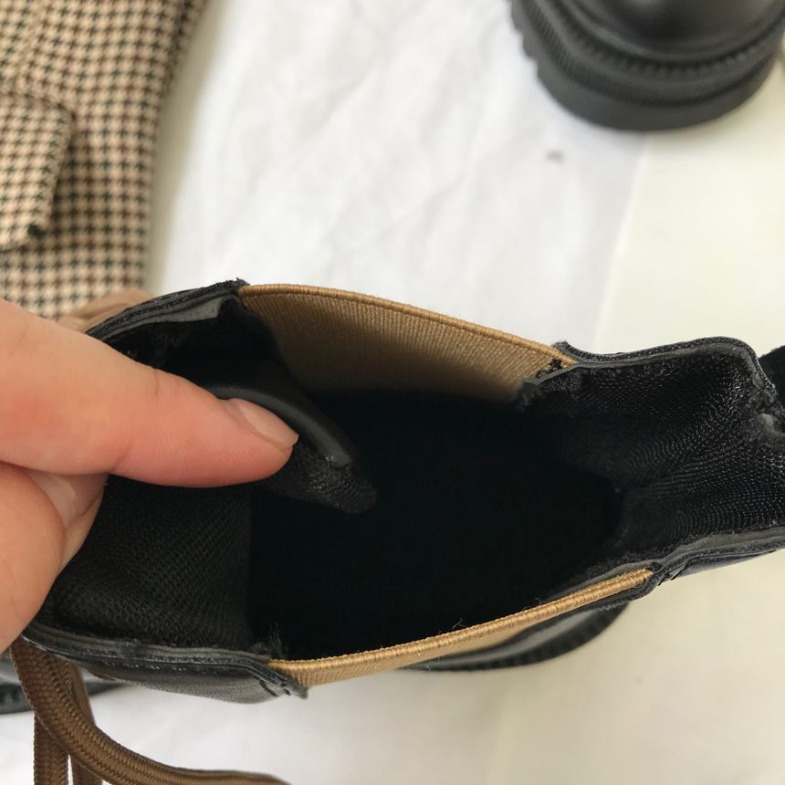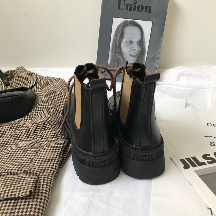 Faux Leather Lace-Up Paneled Short Boots