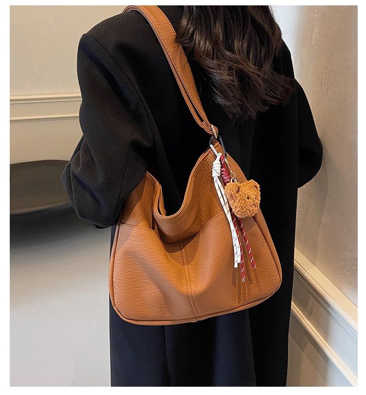 Faux Leather Multi-Pocket Crossbody Bag / Bag Charm / Set