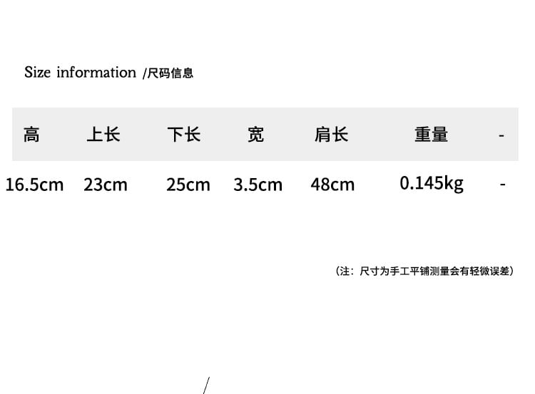 | Upper Length | Bottom Length | Height | Width | Strap Length |