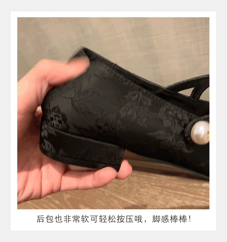 Faux Pearl Fabric Mary Jane Flats