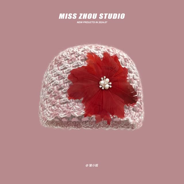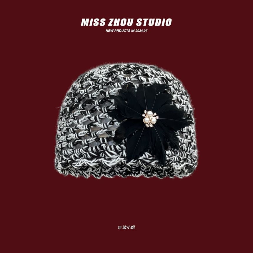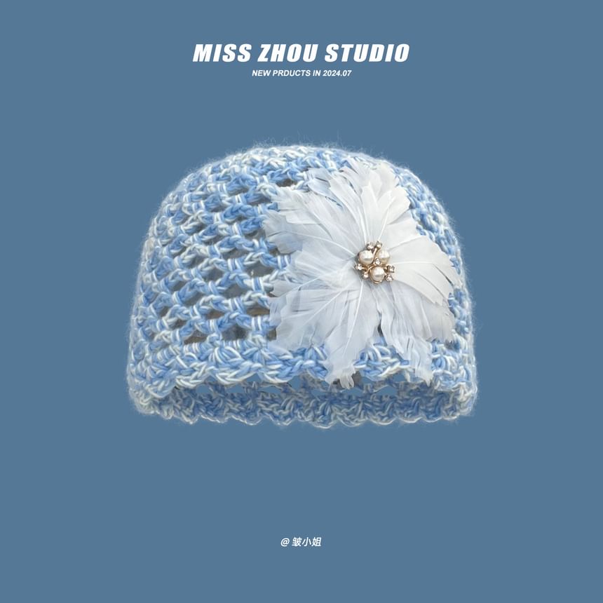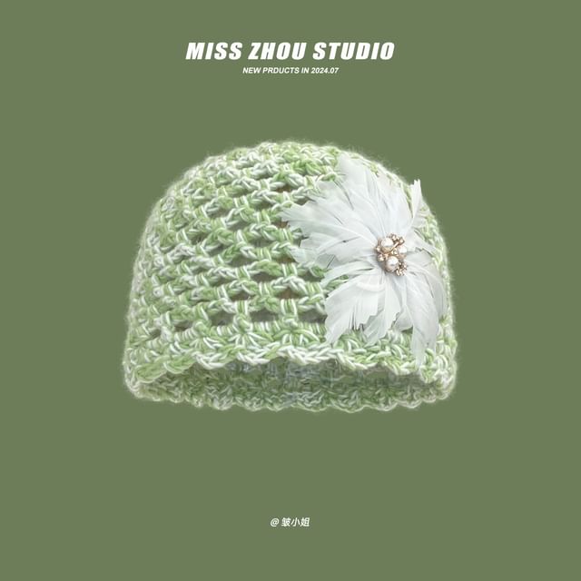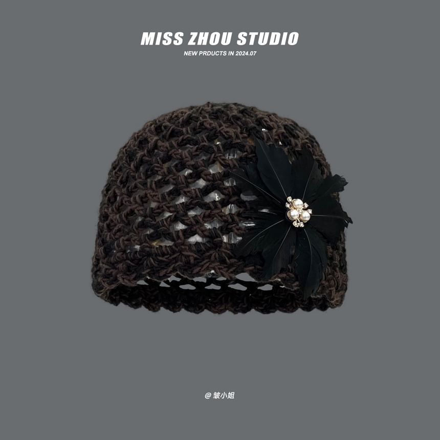 Feather Crochet Knit Hat