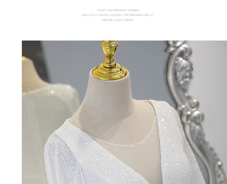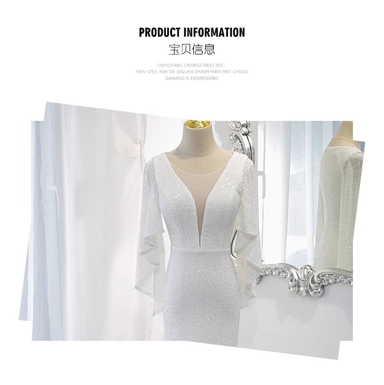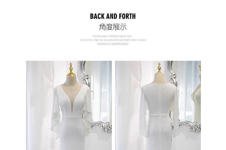 Flared-Sleeve Sequin Mermaid Evening Gown