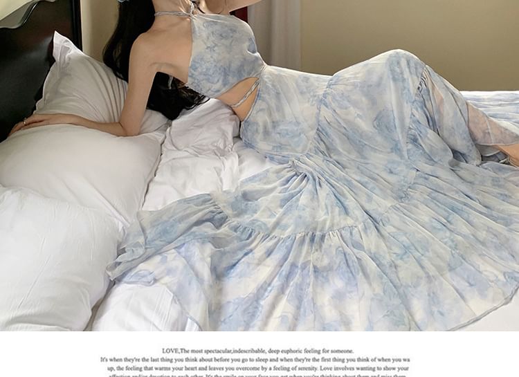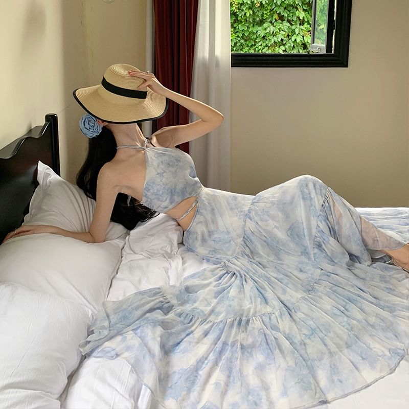 Floral A-Line Maxi Dress Halter Cutout
