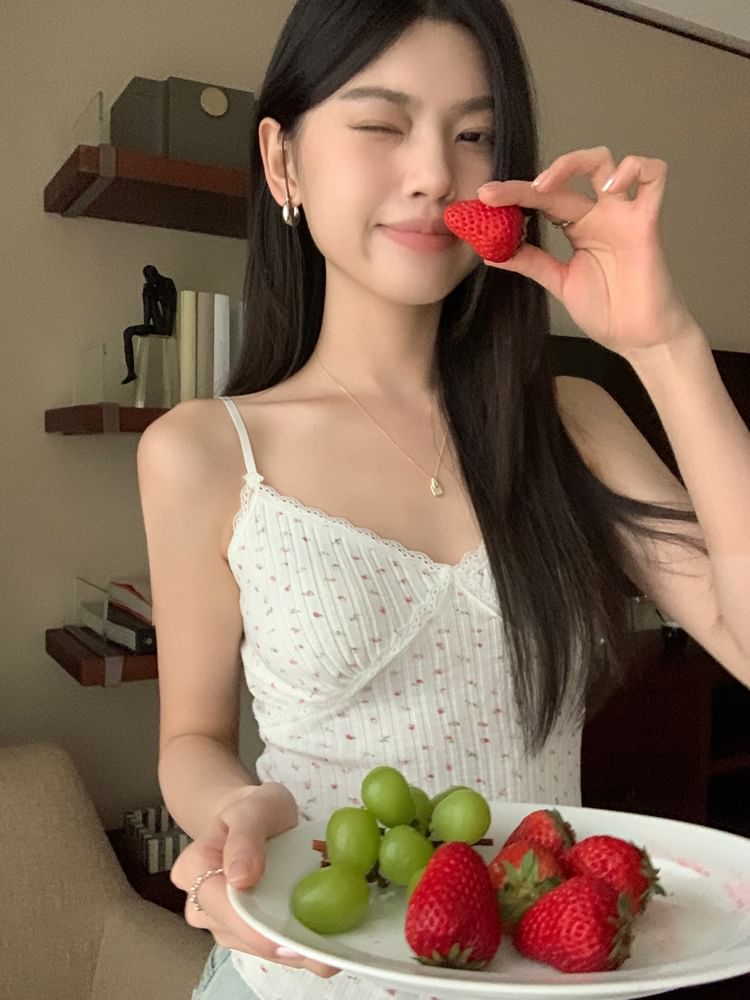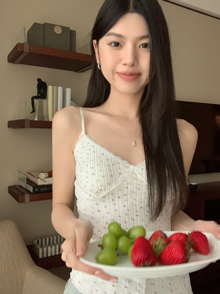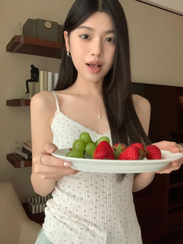 Floral Print Lace Trim Camisole Top