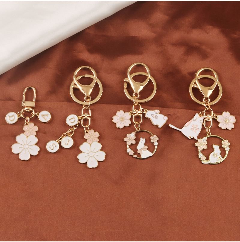 Floral / Rabbit Alloy Keyring (Various Designs)