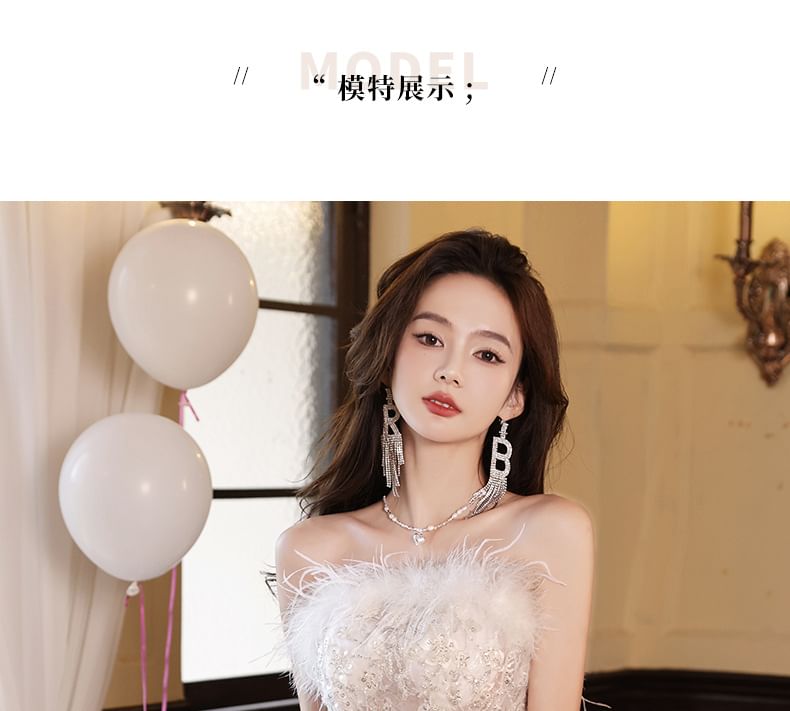 Floral Sequin Fringed Tiered Mesh Slit A-Line Evening Gown