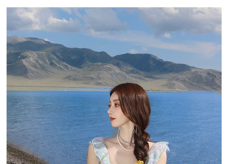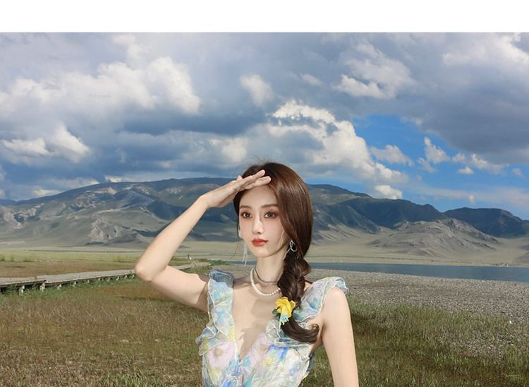 Floral Sleeveless V-Neck Sundress Maxi Cutout Ruffle