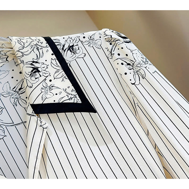 Flower Stripe Shirt Butterfly Print Skirt Set