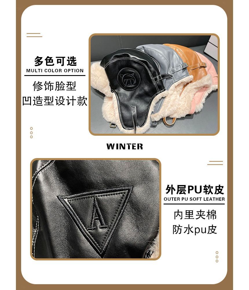 Fluffy Faux Lined Leather Hat