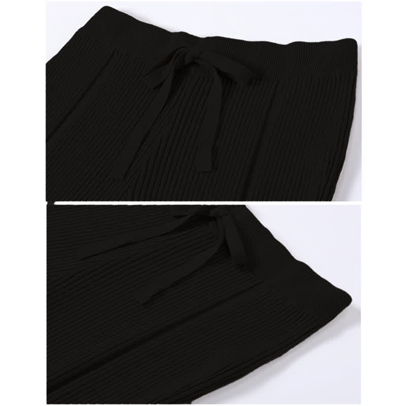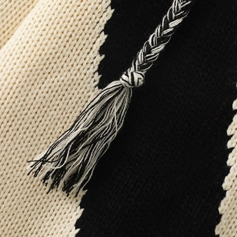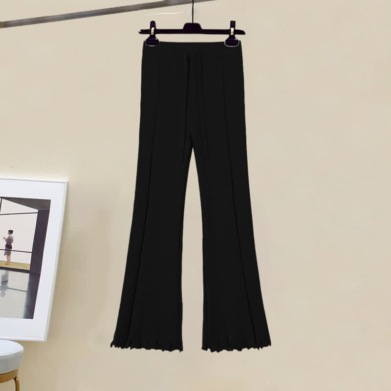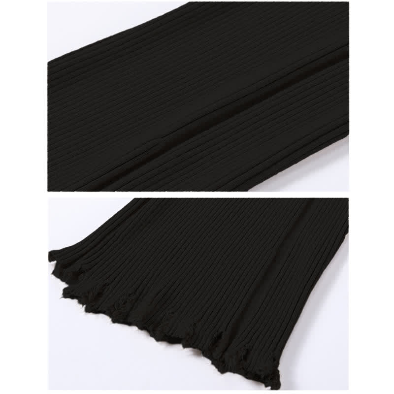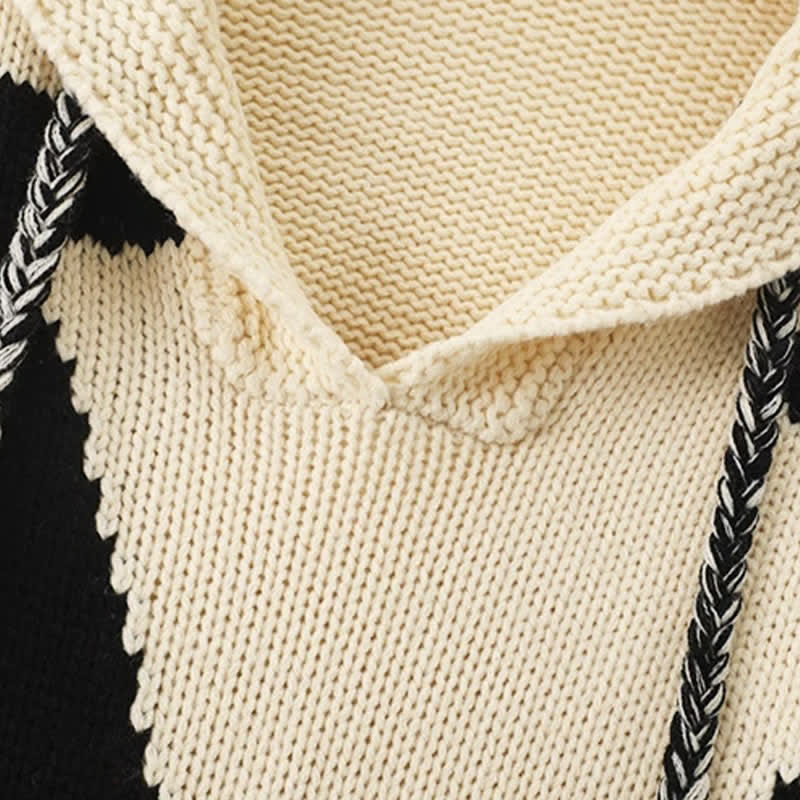 Graphic Bear Ears Hooded Sweater Fringed Knit Pants