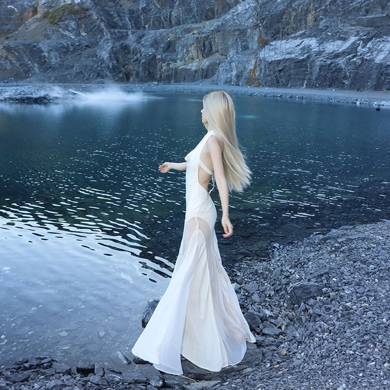 Halter Cowl Neck Plain Backless Maxi Sun Dress