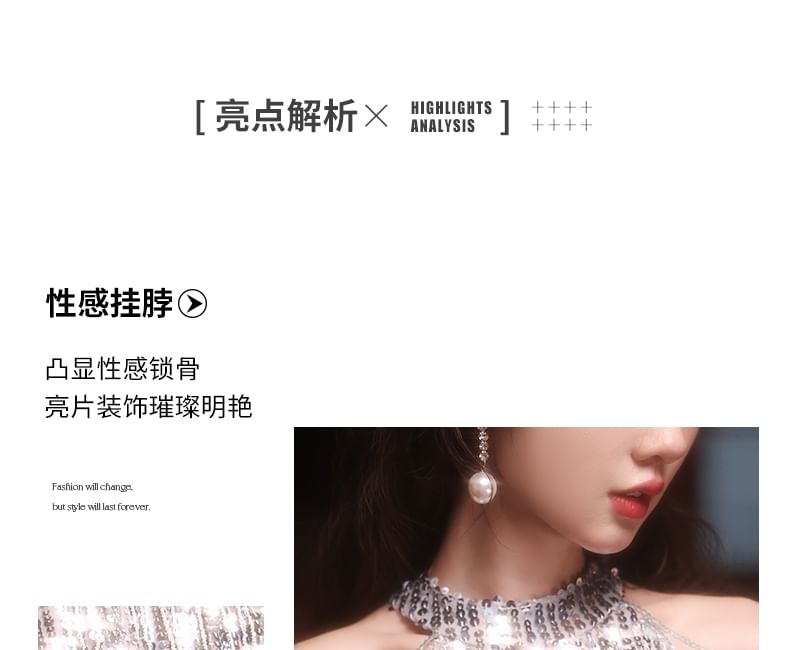Halter Fringed Sequin Sheath Cocktail Dress