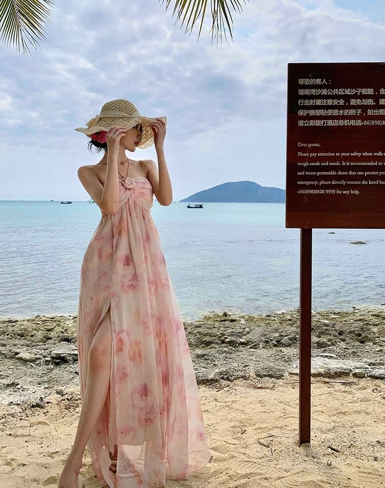 Halter Neck Floral Maxi A