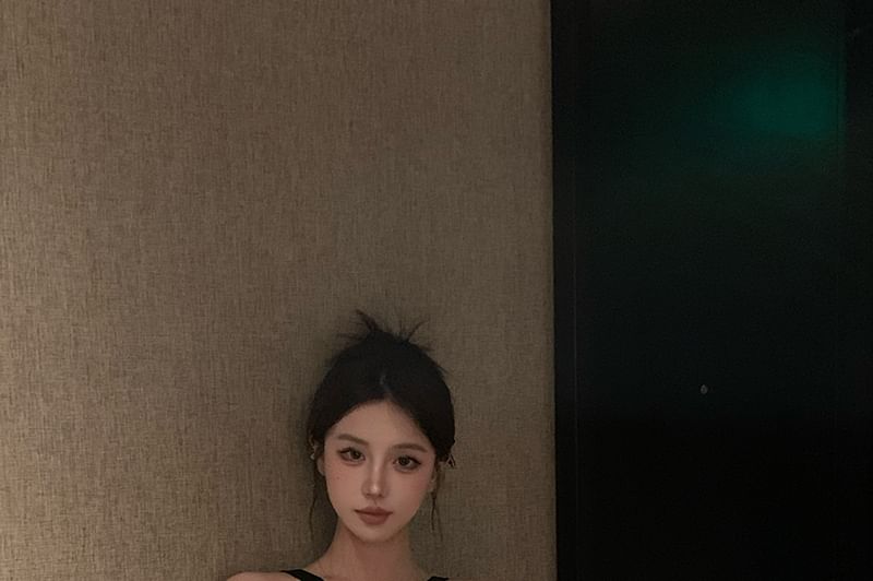 Halter Neck Plain Cutout Slim Fit Crop Top
