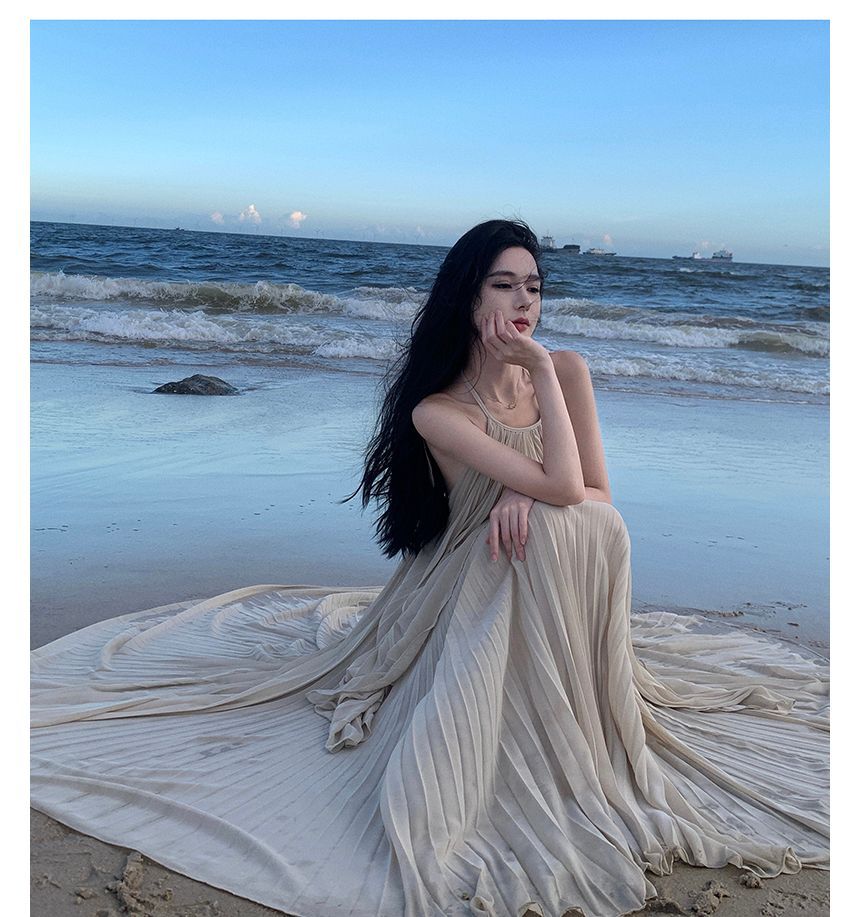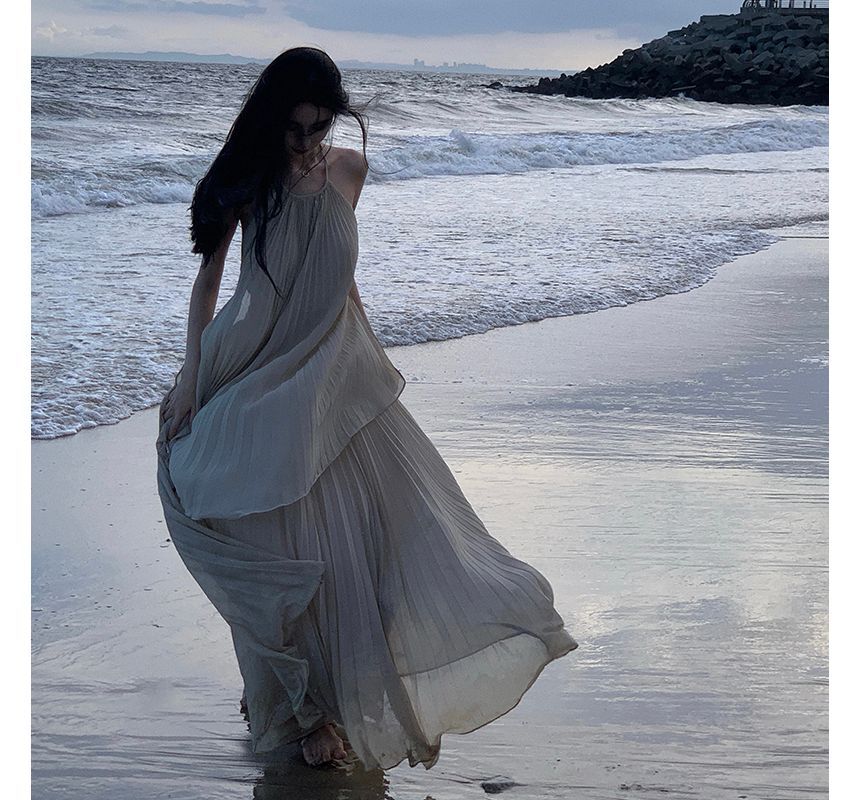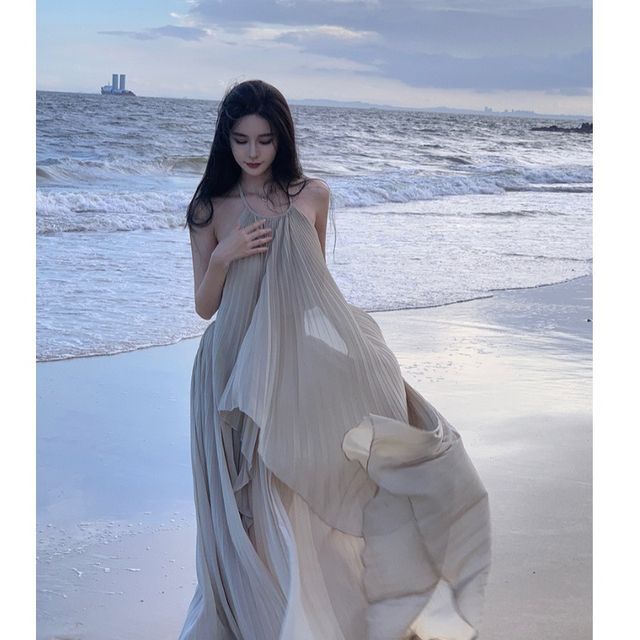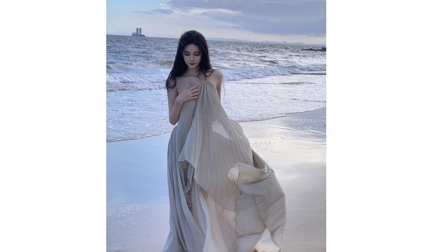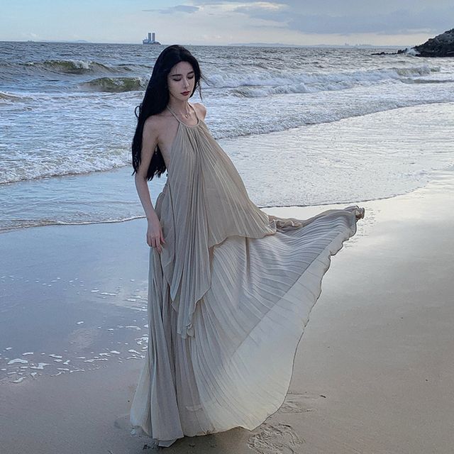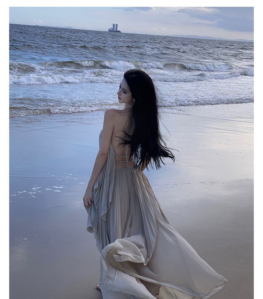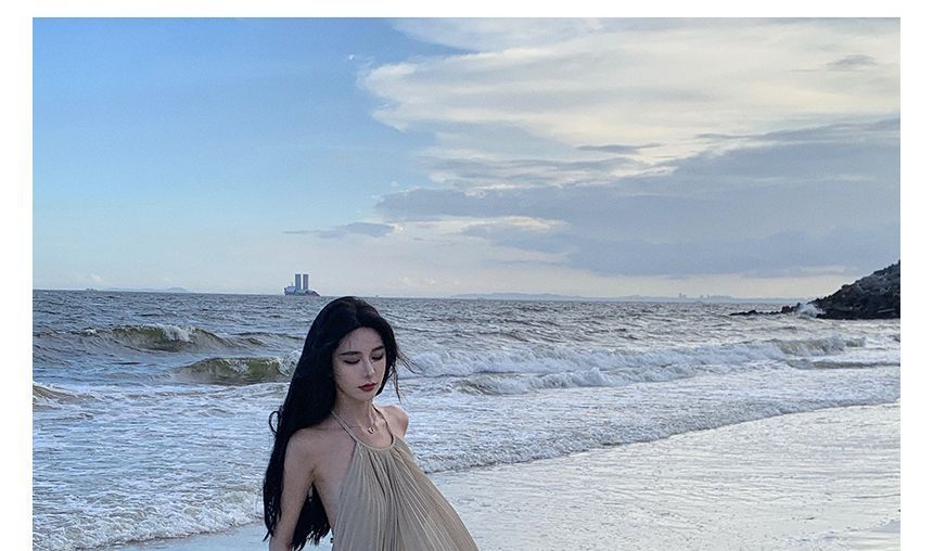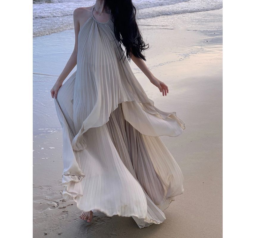 Halter-Neck Two-Tone Paneled Asymmetrical Mini Sundress