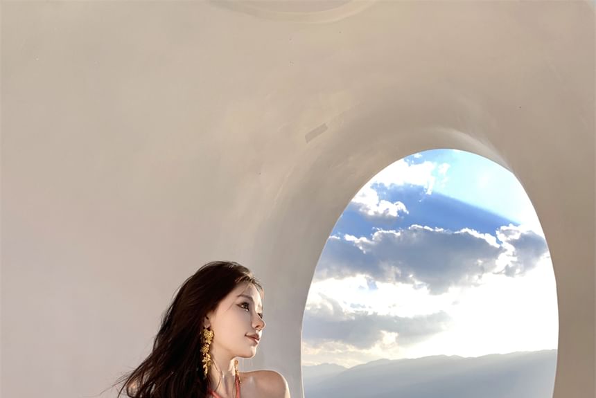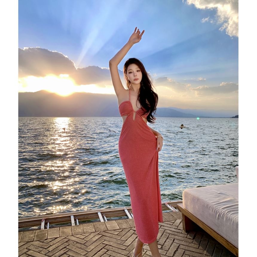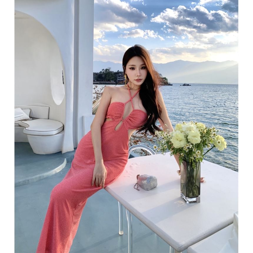 Halter Plain Cutout Maxi Sheath Dress