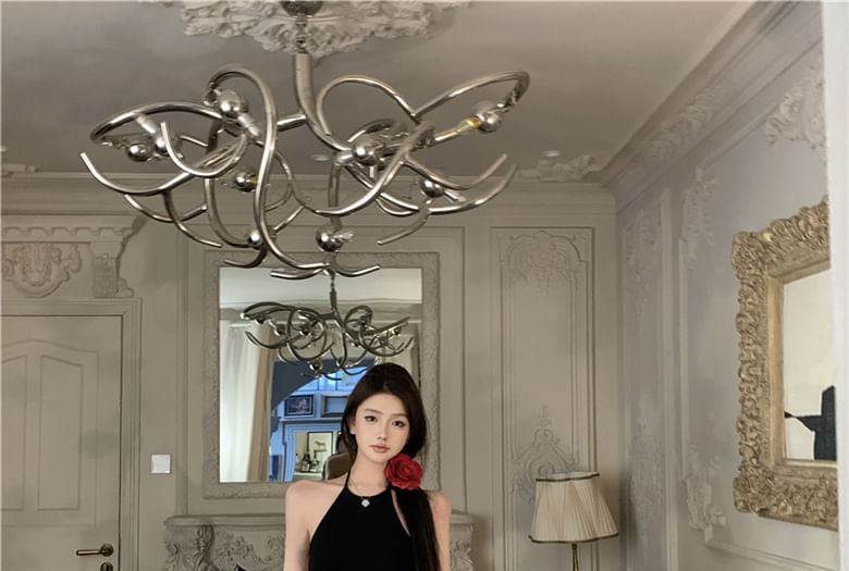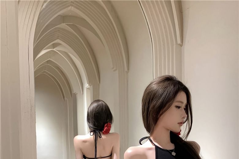 Halter Plain Open Back Maxi Mermaid Dress