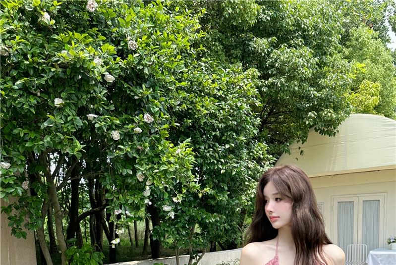 Halter Plain Ruffle Maxi Sundress