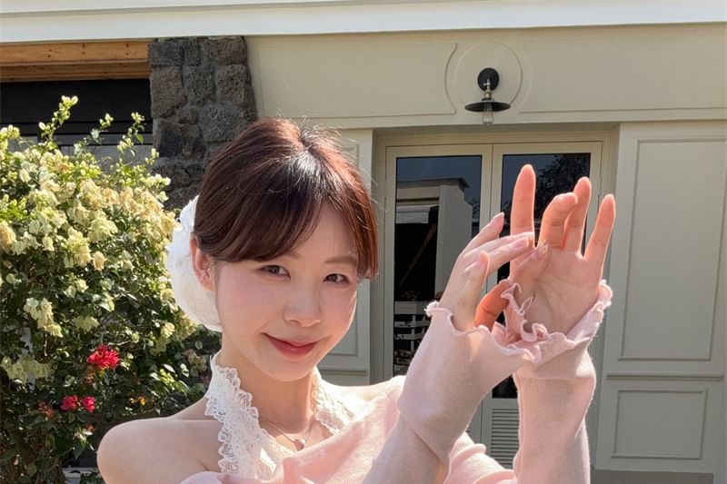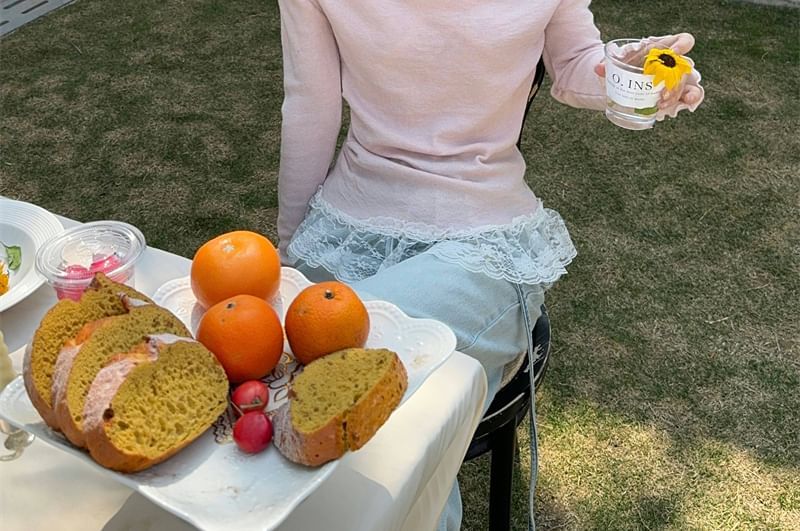 Halter Tee Long-Sleeve Two-Piece Panel Lace Slim Fit Mock