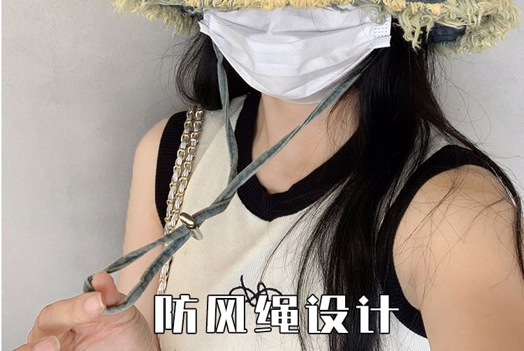 Lettering Fringed Denim Bucket Hat