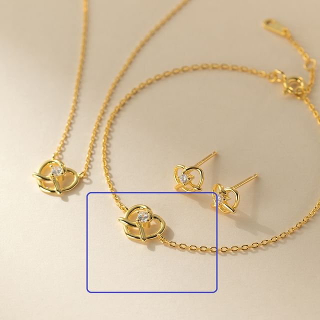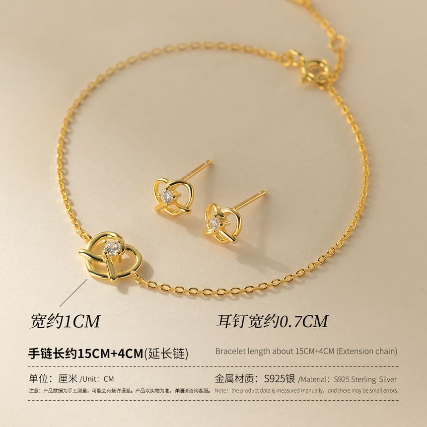 Heart Rhinestone Sterling Silver Stud Earring / Necklace / Bracelet