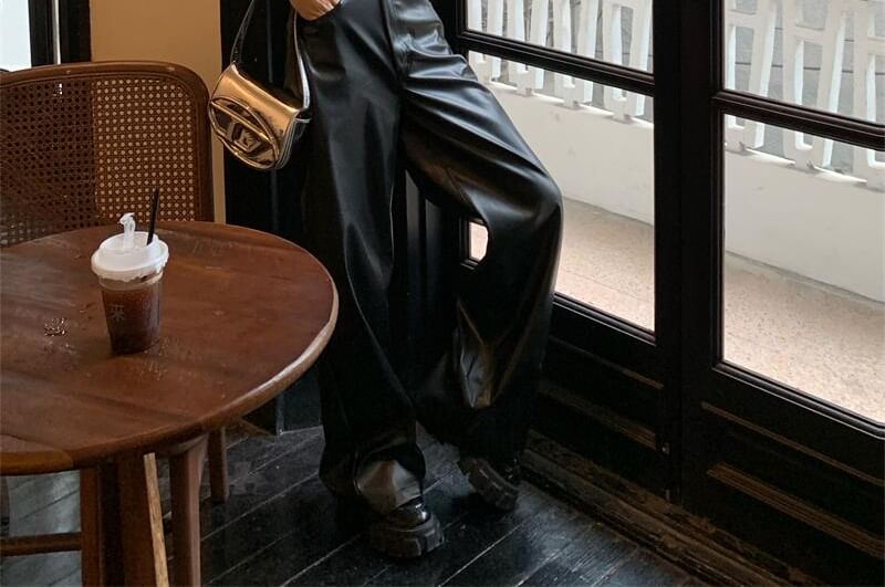 High Camisole / Square Neck Flared Rise Plain Pants Faux Leather Top